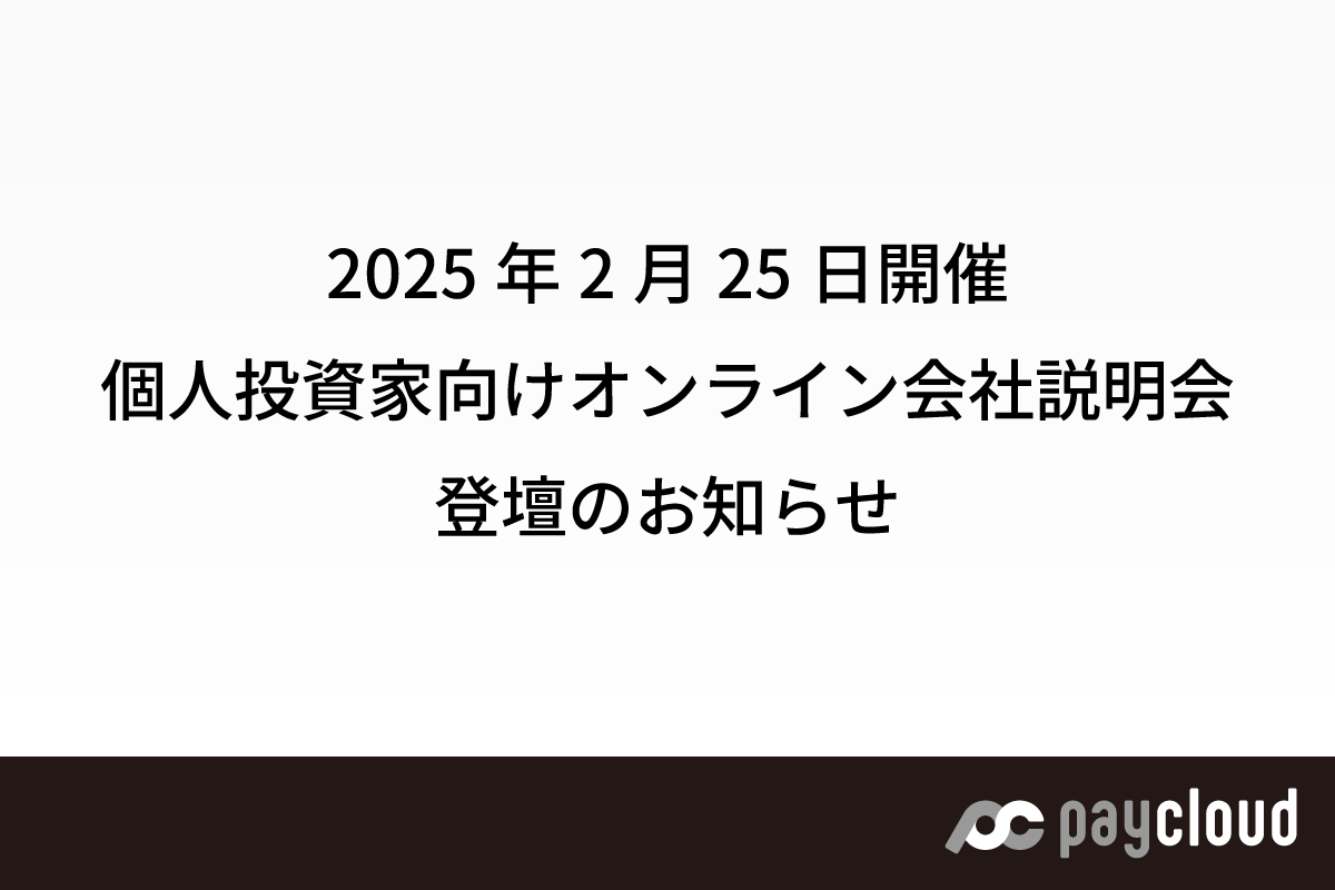 ペイクラウドホールディングス、2026年2月25日開催「個人投資家向けオンライン会社説明会」登壇のお知らせ(マネックス証券運営)